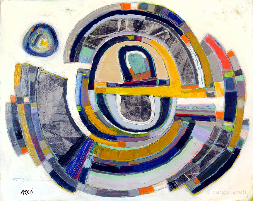 Nargol explore également son fabuleux talent avec ses peintures abstraites sur lesquelles elle aime voir les “accidents inattendus” des couleurs et des coups de pinceaux. “Je prend plus de plaisir à peindre quand je n’essaie pas de contrôler à tout prix mon médium. Ce qui m’intéresse vraiment sur une peinture, ce sont les formes imprévisibles créées par des coups de pinceaux courageux.” Elle ajoute “Quand les couleurs et les formes s’assoient les unes à côté des autres de façon imprévue, elles créent une nouveauté; celle-ci peut être faible ou forte mais c’est une nouveauté et c’est ce que j’aime.” – Nargol Arefi.